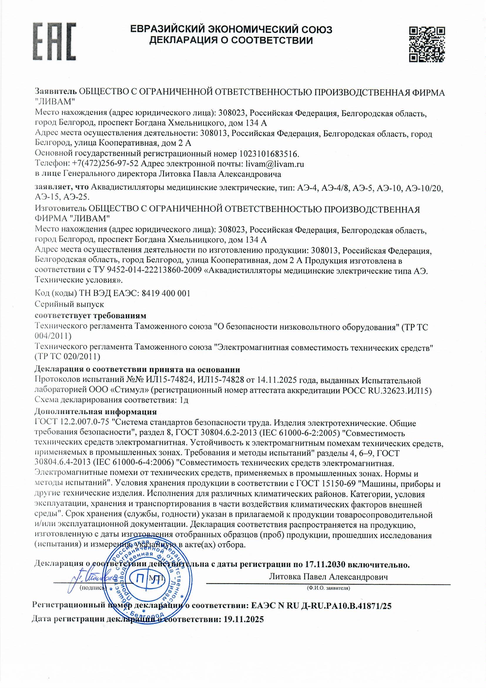 ГОСТ Р 58144-2018 «Вода дистиллированная», ФС.2.2.0019.18 «Вода для инъекций» |